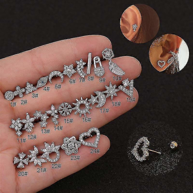 1pc Gold And Silver Color 16g Stainless Steel Cz Cartilage Earring Stud Helix Screw Back Ear Pierci