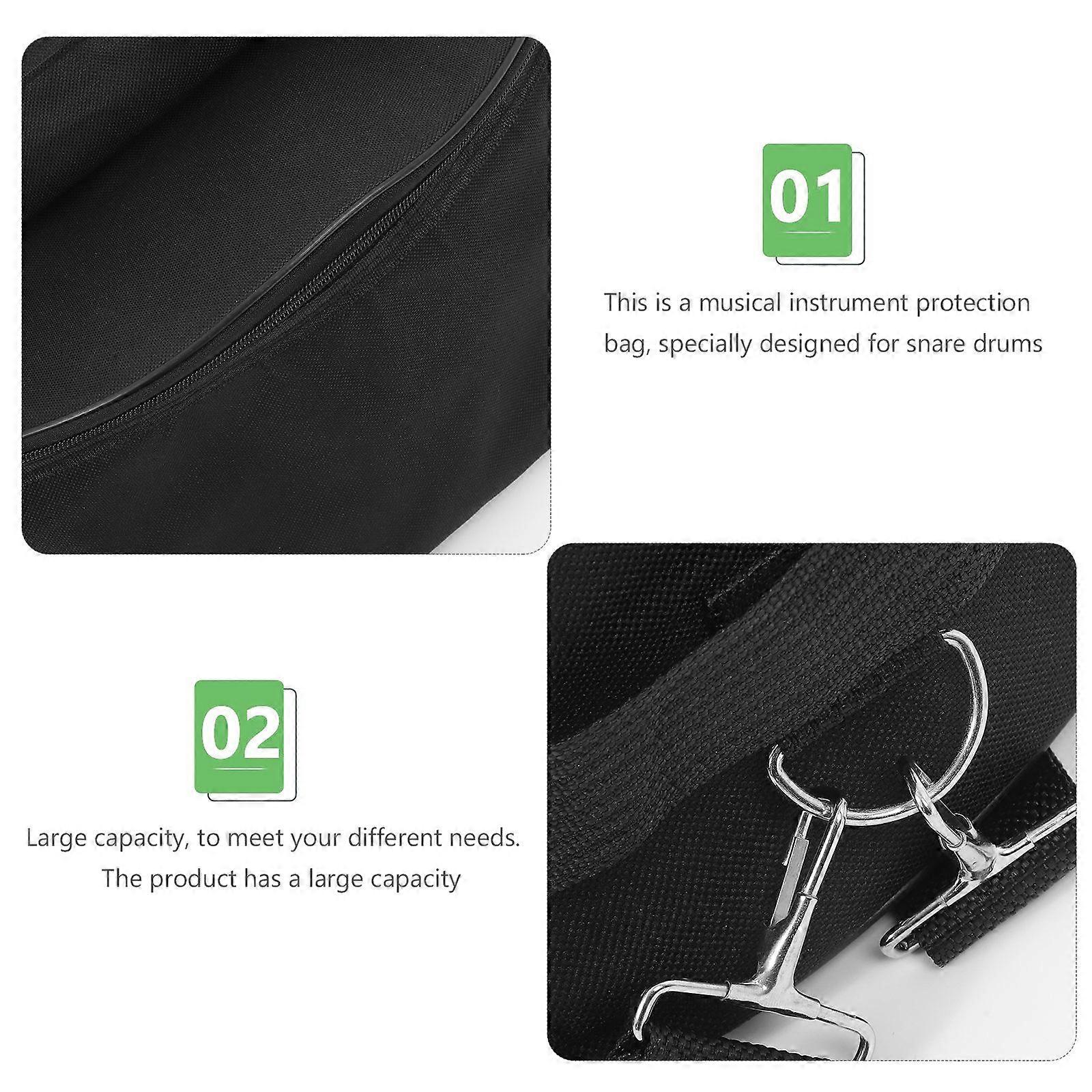 Description Made of premium material, this snare drum bag has shoulder strap and handle, you can carry it with your hand or as a backpack, very convenient to carry your drum everywhere. A practical carrying bag for musicians. Features - Color: Black. - Material: Oxford cloth. - Size: 44.50X44.50X27.00cm/17.49X17.49X10.61inch. -This is a musical instrument protection bag, specially designed for snare drums. The product has fine workmanship. - The waterproof can ensure the safety of your snare drum and prevent your snare drum from being damaged or scratched. - High-density waterproof fabric, large capacity, to meet your different needs. The product has a large capacity. - The product has the characteristics of being very portable, which can be used as a backpack or hand-held, which is easy to use. - With the fine workmanship and premium material, it can be used for a long time.Package list: 1 x snare drum bag