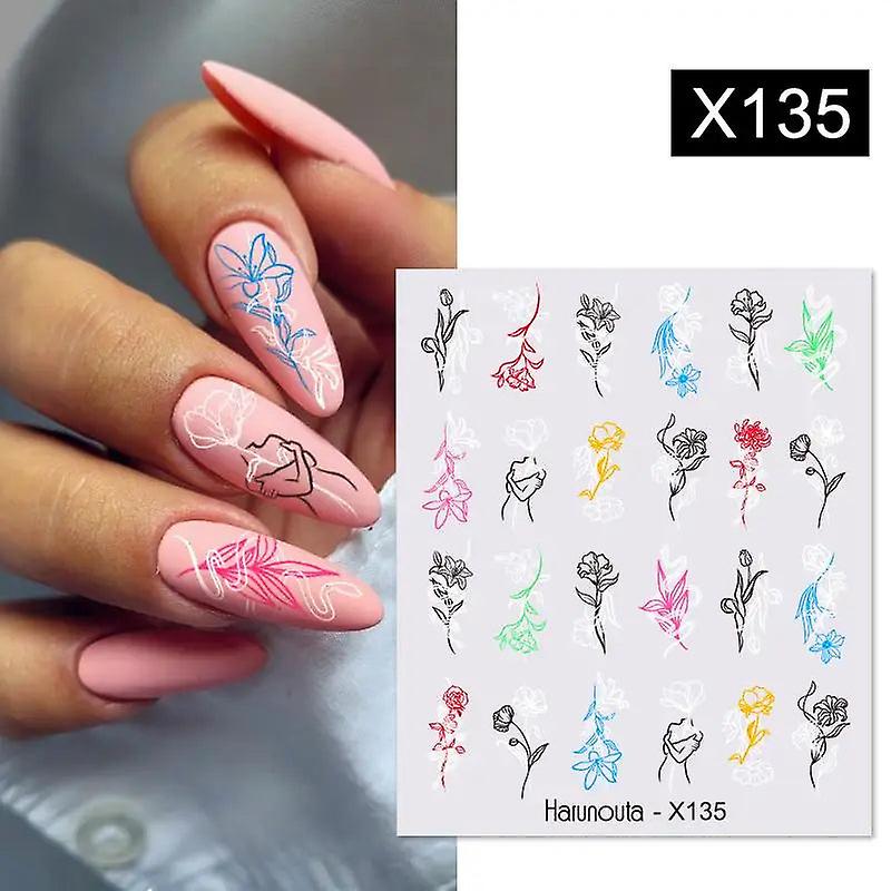 1 Pc 3d Nail Stickers Leaves Sliders For Nails Gold White Bronzing Flowers Gradient Adhesive Sticker Nail Design Art Decorations