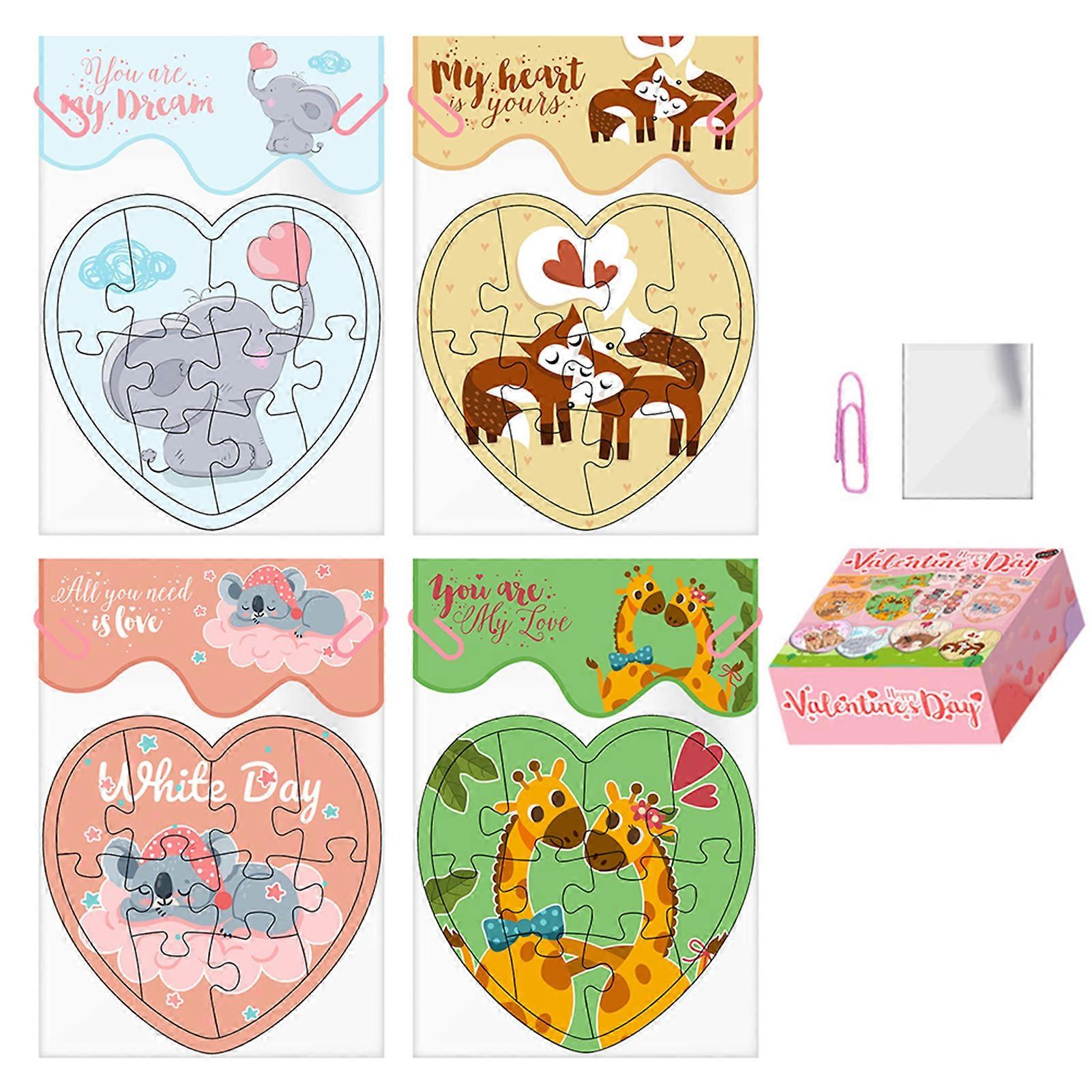 1 Set Love Heart Puzzle Toy Cartoon Animal Valentine Jigsaw Puzzle Set Fun Educational Games Toy