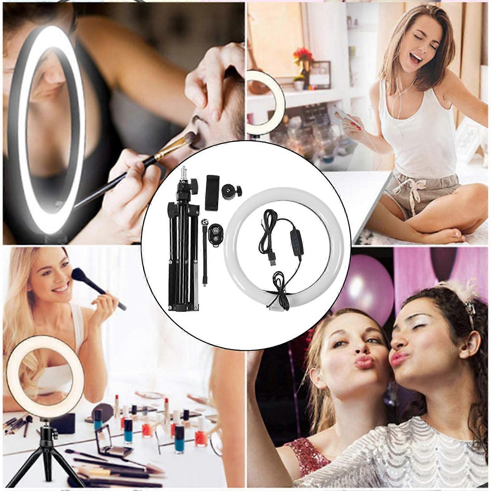 10" Dimmable LED Ring Light with Tripod, 128 LEDs, USB Powered