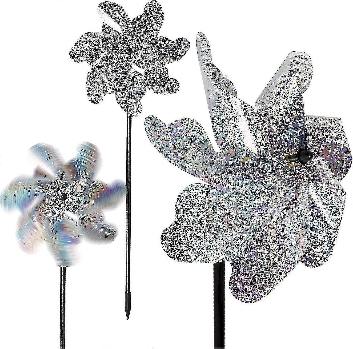 10 Pack Pre-assemble Sparkly Reflective Pinwheels | Bird Blinder Pin Wheel | Scare Birds Animals Away | Wind Spinner For Yard And Garden