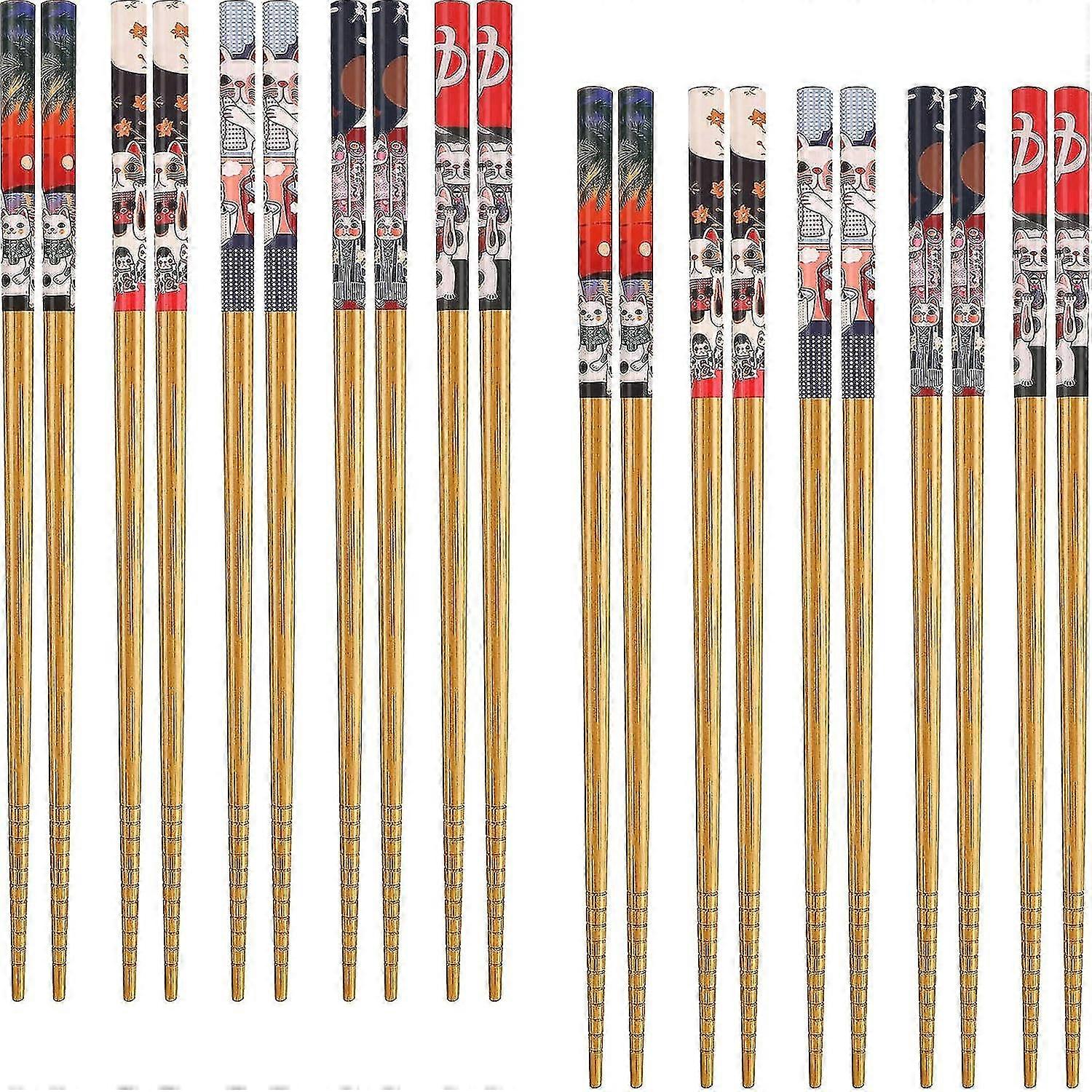 10 Pairs of Bamboo Chopsticks Classic Chopsticks Lucky Cat Chopsticks Reusable Japanese Bamboo Chopsticks