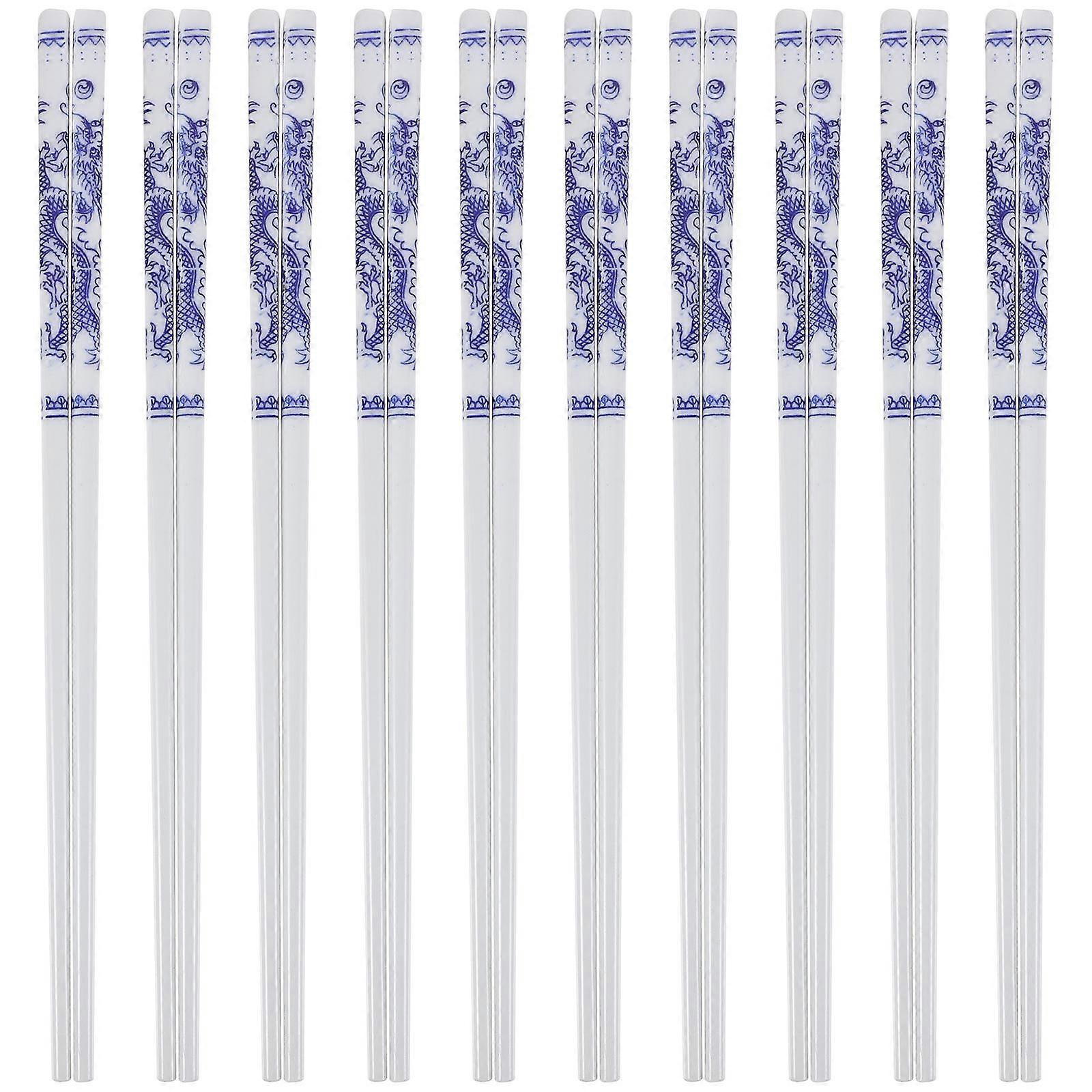 10 Pairs High Temperature Resistant Ceramic Porcelain Chopsticks, Slip Resistant Dining Utensils, Compact Elegant Blue Floral Design for Home and