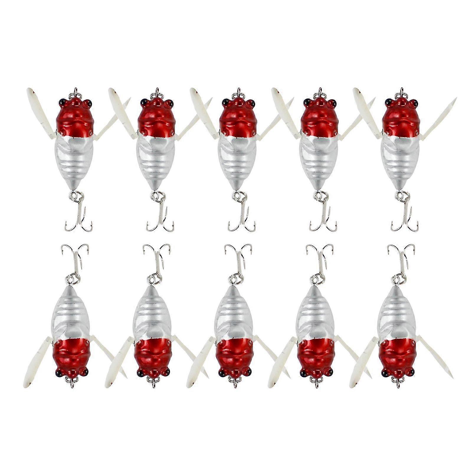 10 Pieces Fishing Lure Hard Baits Bionic Cicada Saltwater Red Head