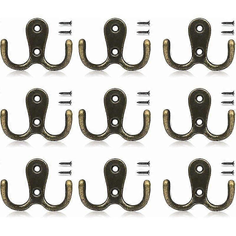 10 Pieces Vintage Hook, Metal Hook Retro Double Wall Hook, Zinc Alloy Hook, Bathroom, Coat, Hat and Kitchen, Bedroom Hook and Decoration