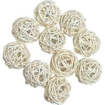 10 Pieces Wicker Rattan Balls Decorative Orbs Vase Fillers, Dia:30mm - White