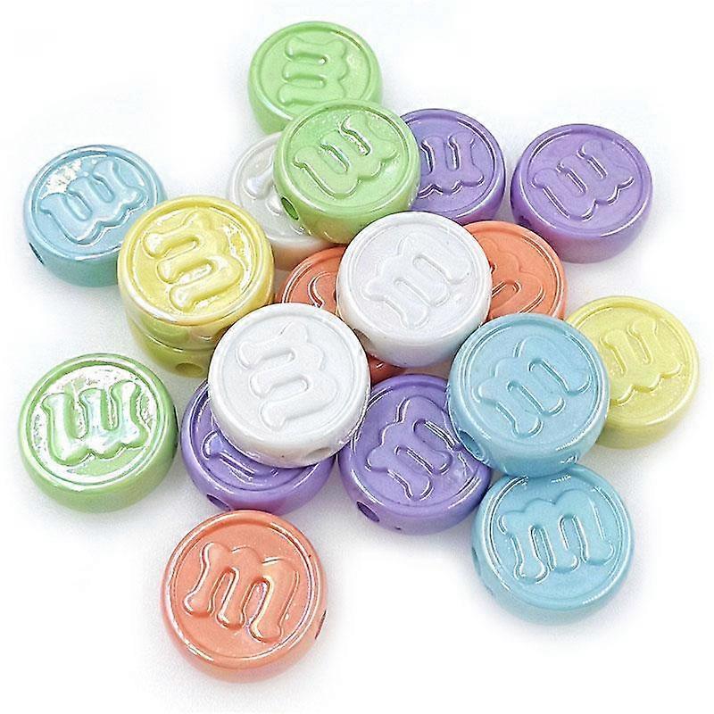 10pcs Creative Acrylic UV Color M Letter Loose Beads Flat Round Beads DIY Jewelry Accessories