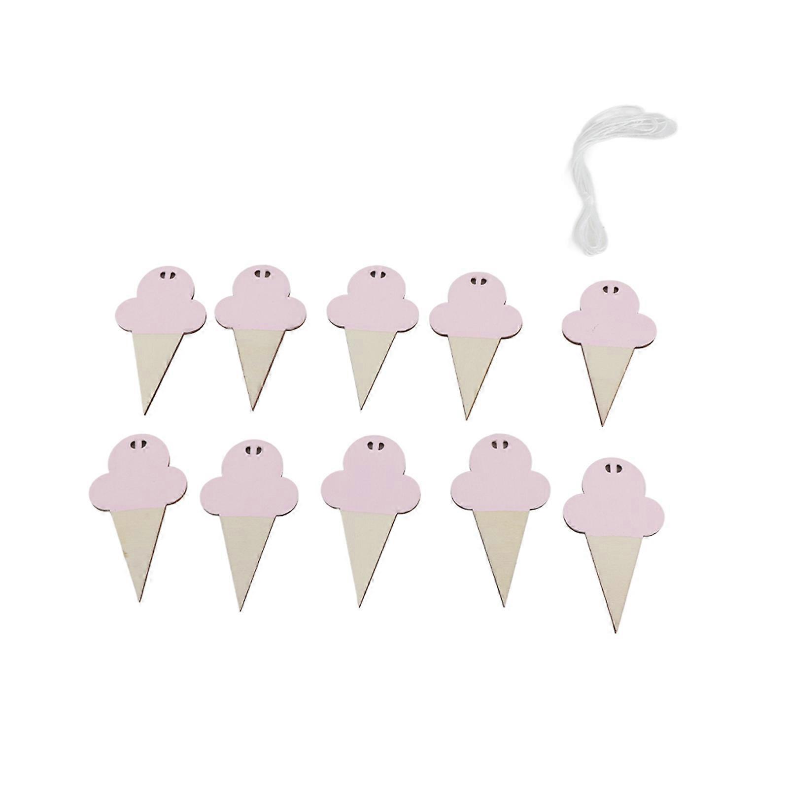 10Pcs Ice Cream Shape Wooden Hanging Garland for Nursery and Children Bedroom Wall Decorations Pink Color