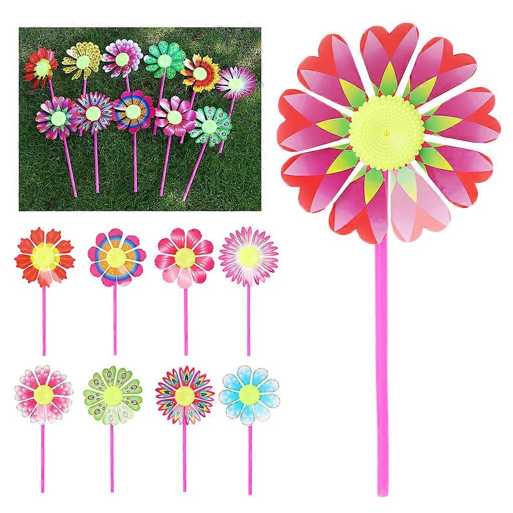 10Pcs Windmill Kid Toys Sunflower Yard Garden Ornaments Colorful Outdoor Spinner Multi