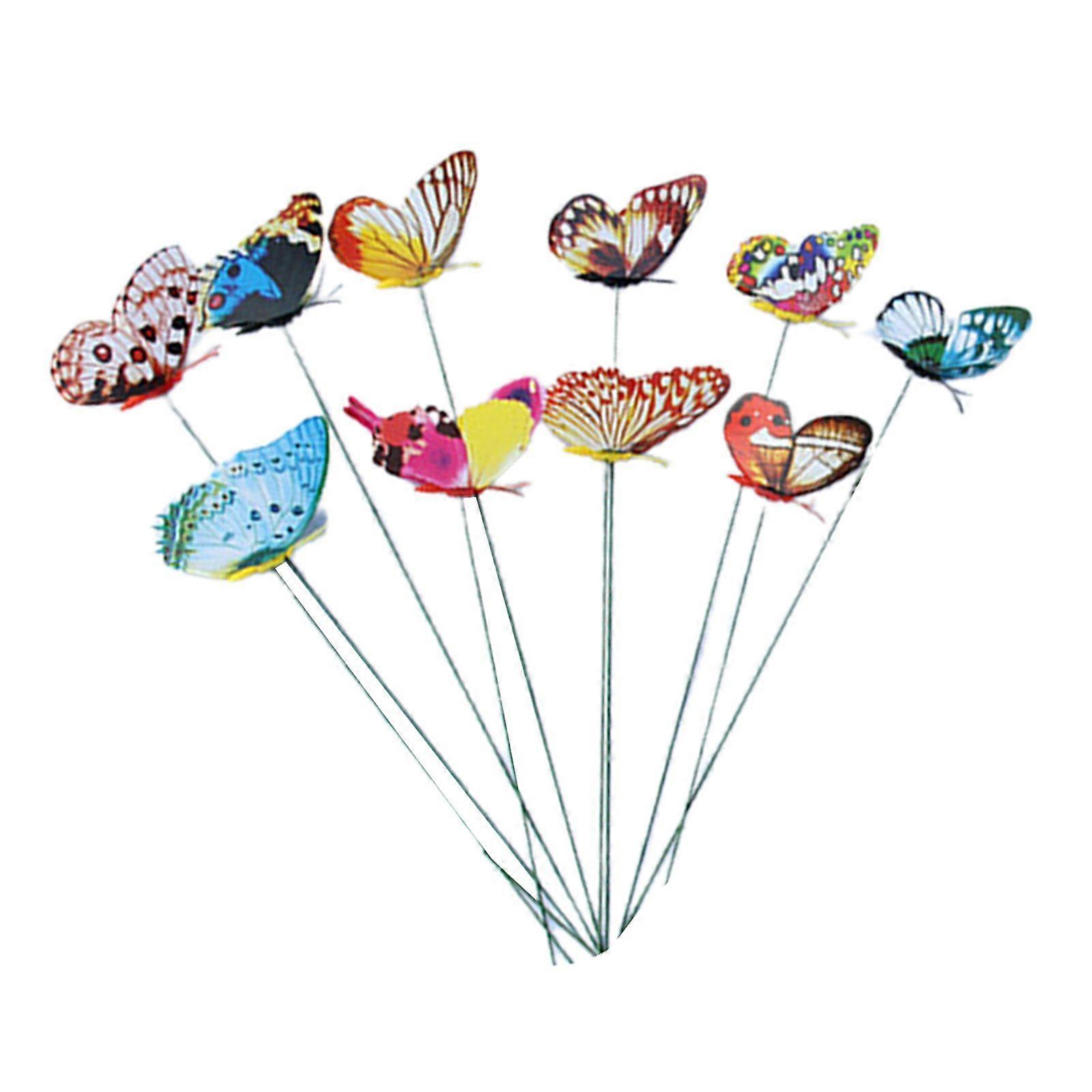 10Pcs Luminous Butterfly Stake Weather-resistant Outdoor Garden Planter Pot Vase 3D Fake Butterfly Pole Spike Stick Decoration Photo Prop