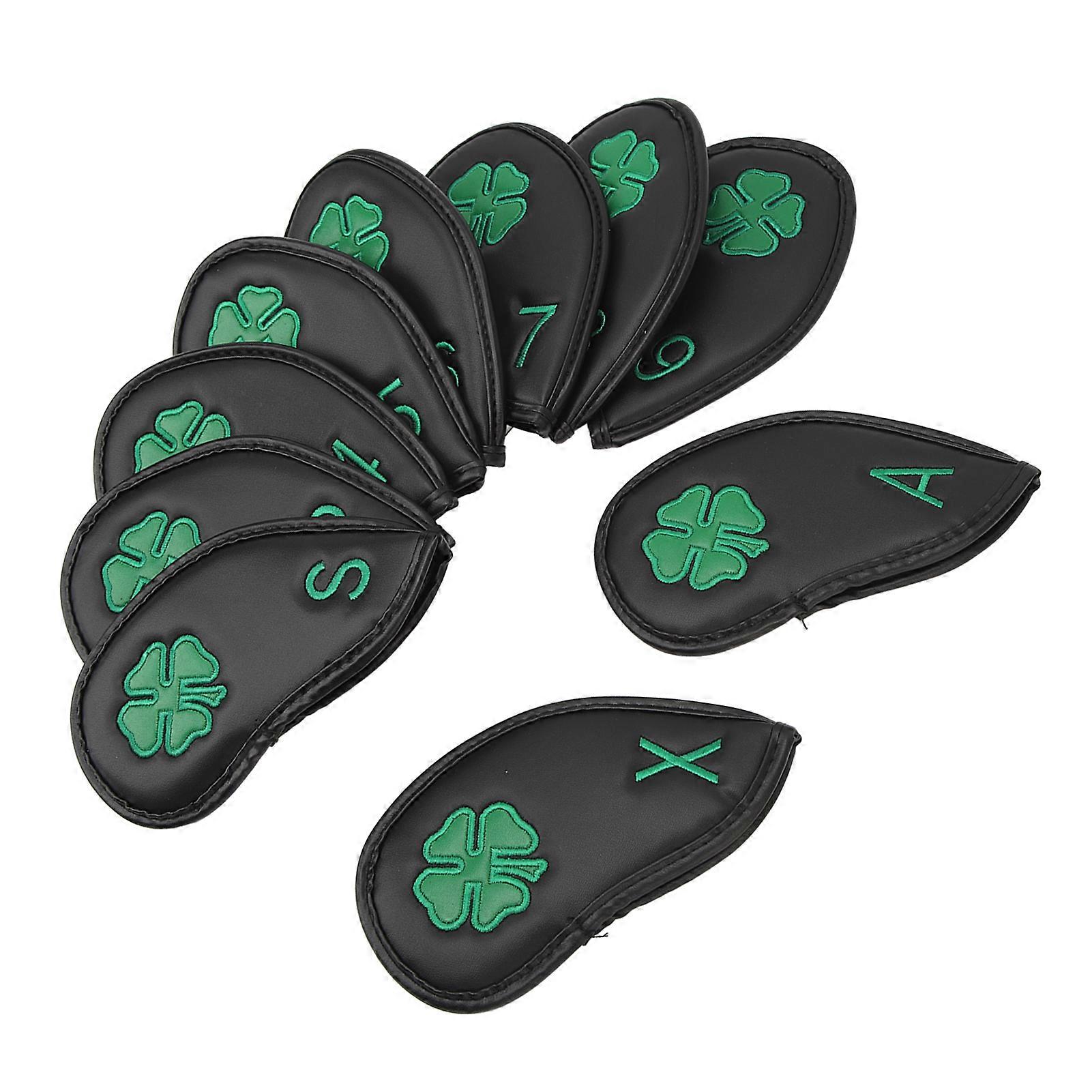 10 PCS Golf Club Head Covers Four Leaf Clover Pattern PU Waterproof Delicate Golf Iron Covers Set for Most Clubs Black