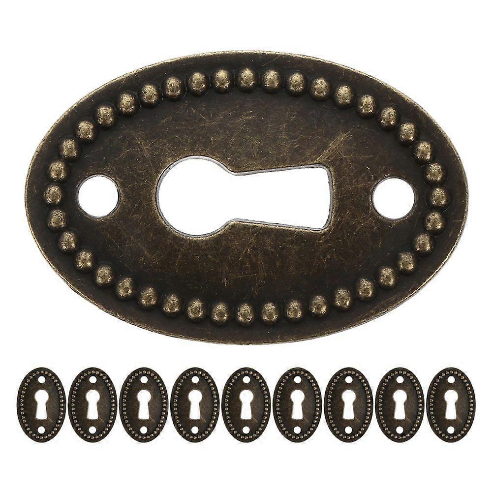10PCS Oval Plated Decorative Keyhole Cover Insert Vintage Alloy Keyhole Plate for Cabinet Door Desk Furniture Jewelry Box Dresser Drawer for Home Offi