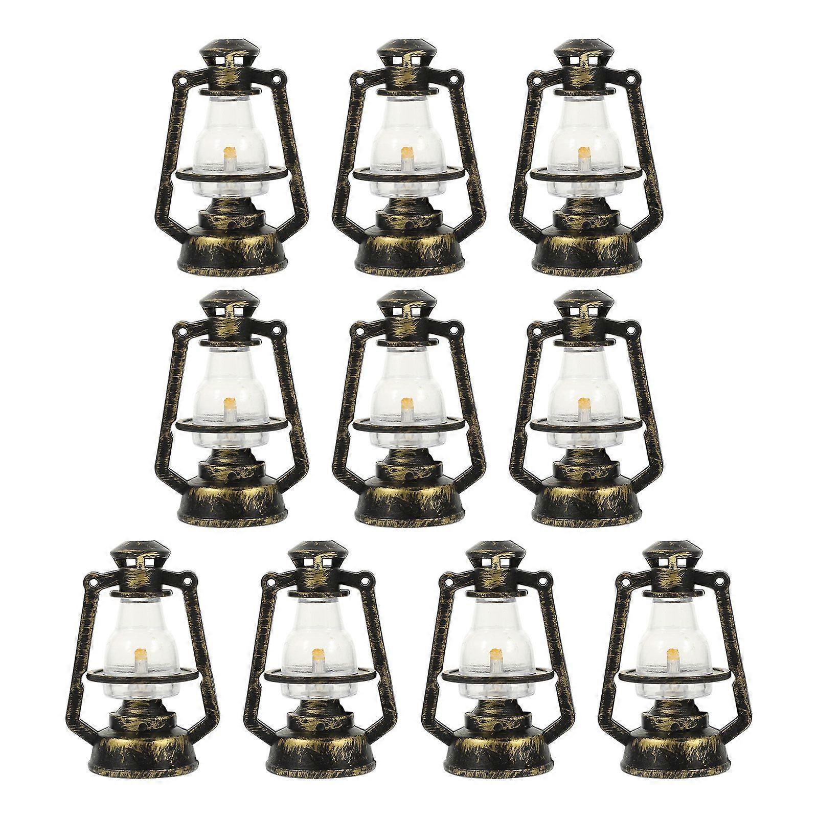 10pcs Mini Kerosene Lamp: Vintage Dollhouse Christmas Hurricane Lantern Retro Halloween Kerosene Lamp Xmas Tree Decoration
