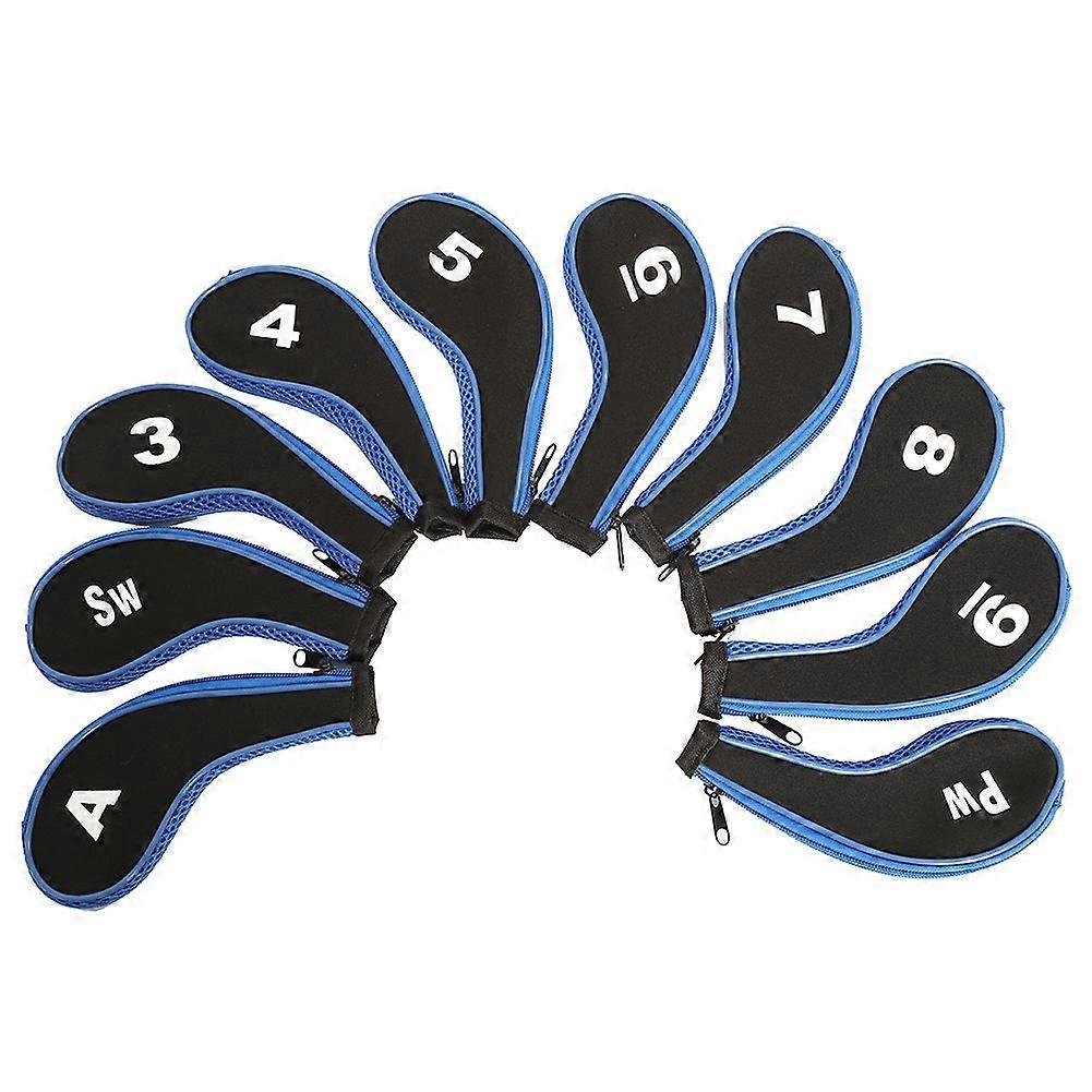 10Pcs/Set Golf Head Protect Cover Iron Club Long Zipper Number Protective Headcover Blue