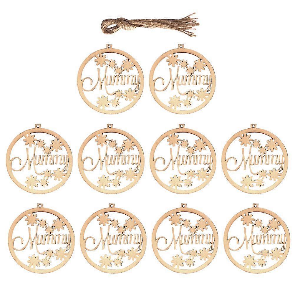 10Pcs Wooden Mother's Day Wooden Pendant Festival Wooden Craft Hanging Decors
