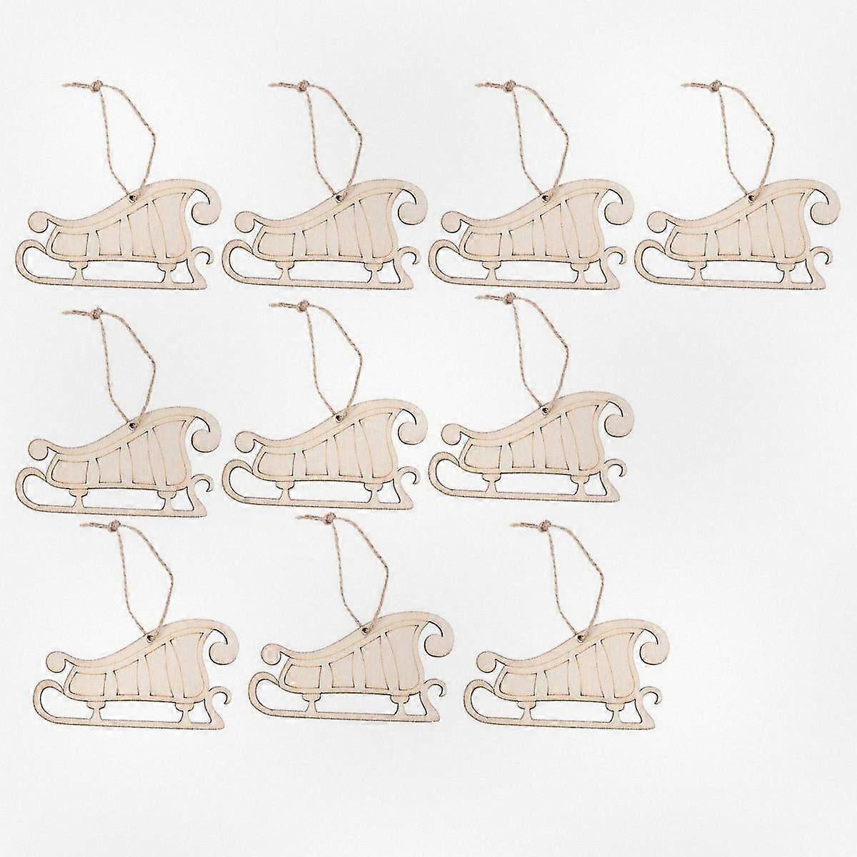 10pcs Wooden Christmas Ornaments Santa Sled Hanging Decor with Natural Rope for Holiday Tree Home Party Decoration Xmas Gift Supplies
