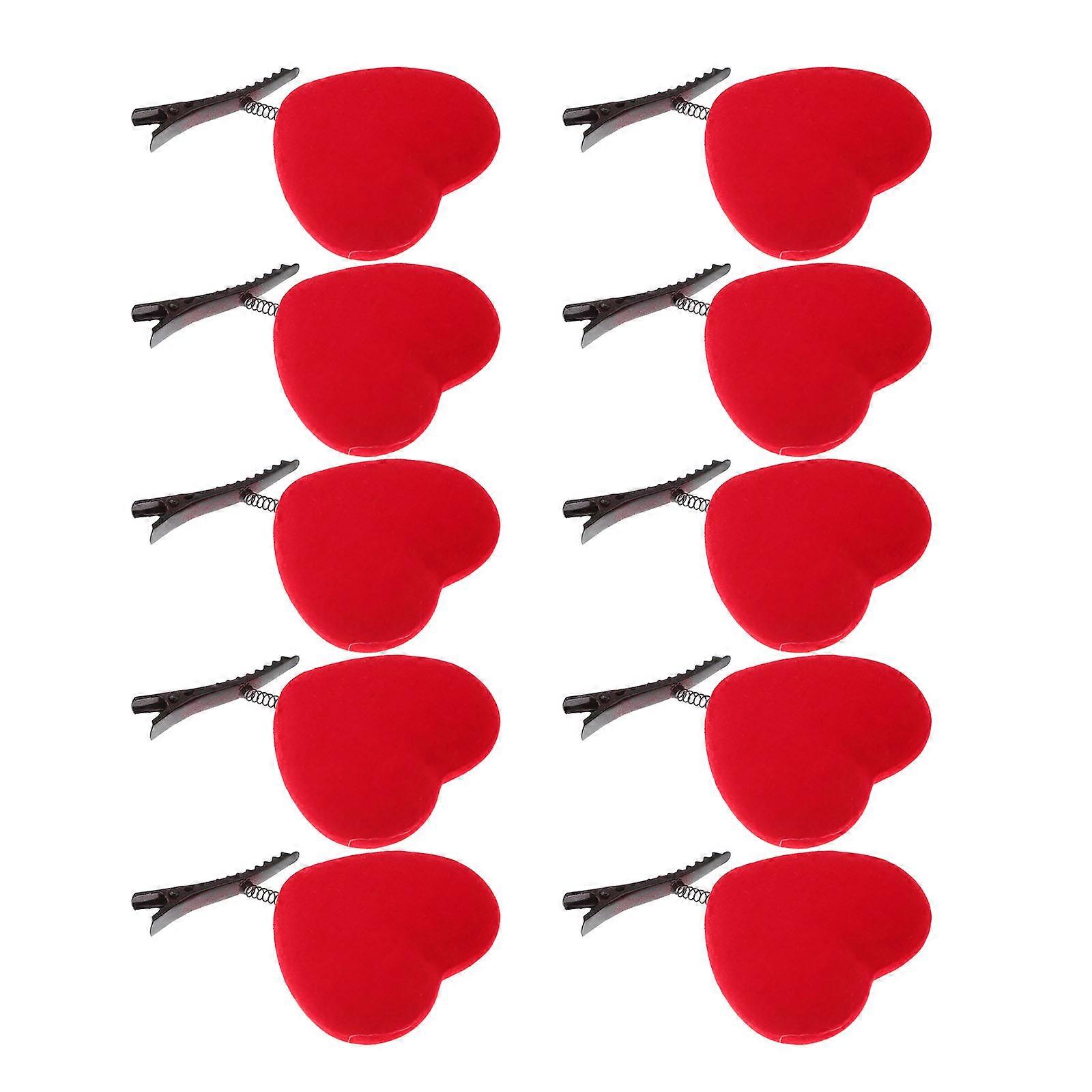 10pcs Cute Heart Shaped Hair Clips for Kids Girls Red Color