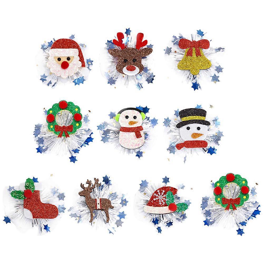 10pcs Christmas Hair Clips Xmas Themed Barrettes Non Woven Holiday Hairpins for Parties Birthdays Cosplay