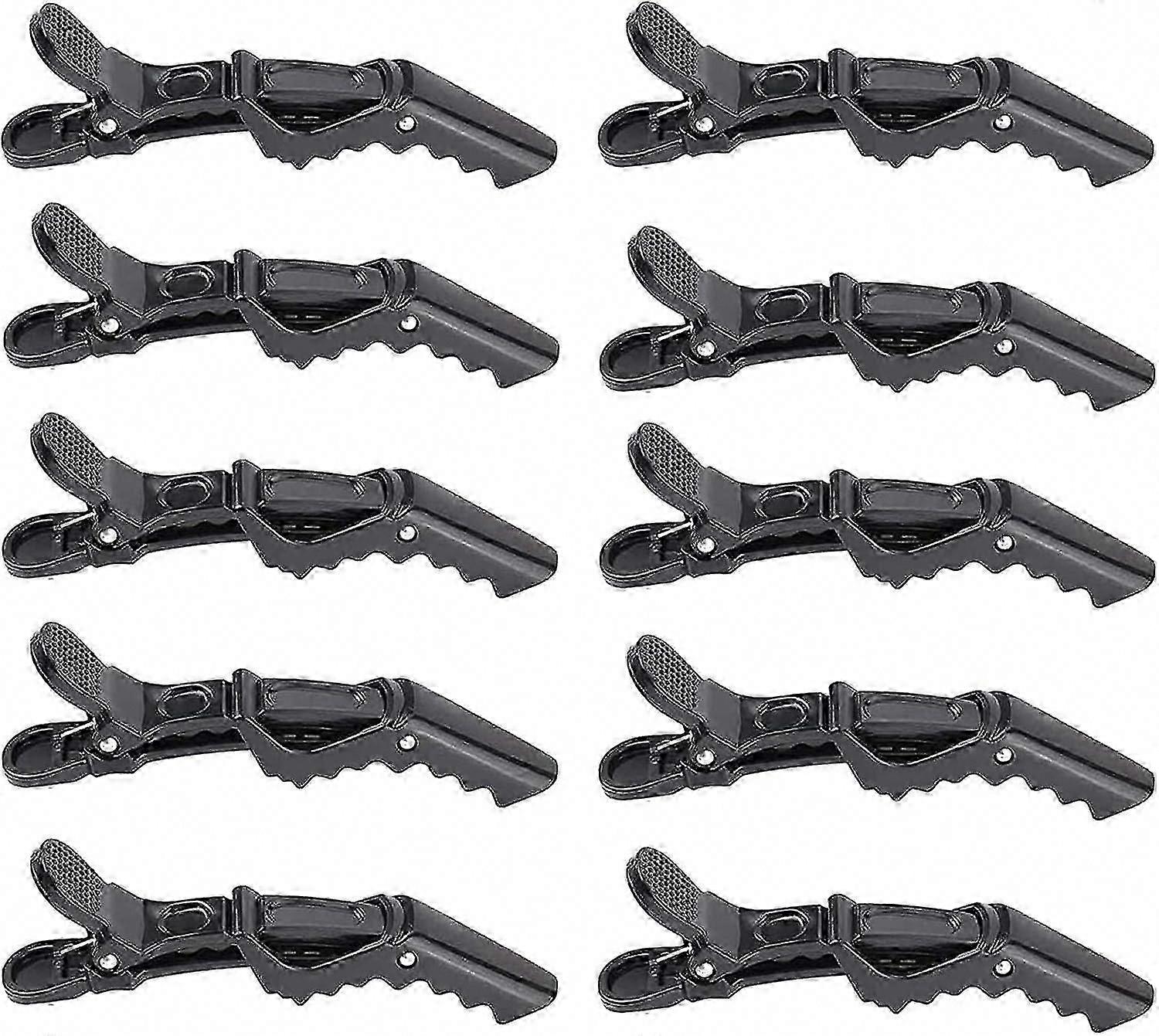 DURABLE HAIR STYLING CLIPSMade of heavy-duty plastic and highly elastic springs, sturdy and durable enough to handle any type of hair, easy to use, lightweight and will not rust or hurt your scalp.PROFESSIONAL SALON HAIR CLIPSThe styling clips with extra wide teeth to prevent hair from slipping out of the clip. Unique and flexible double-hinged claws to keep hair in place without leaving a dent, damaging it, or getting it tangled.NON-SLIP GRIP DESIGNThese crocodile clips for extensions have anti slip particles on the ergonomic grip which lets you handle your hairpins with just two fingers without them slipping, even with wet hands.WILDLY USAGEIncluding 10 pieces croochdile hair clips, they are ideal hair clips for men, women, girls, salon hairdresser and makeup artists during hairstyling, hairdos, haircuts, hair dyeing, make up, and as DIY accessories.ORDER WITH CONFIDENCEWe are certain that you will love these styling hair clips as much as we do, but if for any reason you are not completely satisfied, please feel free to contact us and well be happy to help you out.