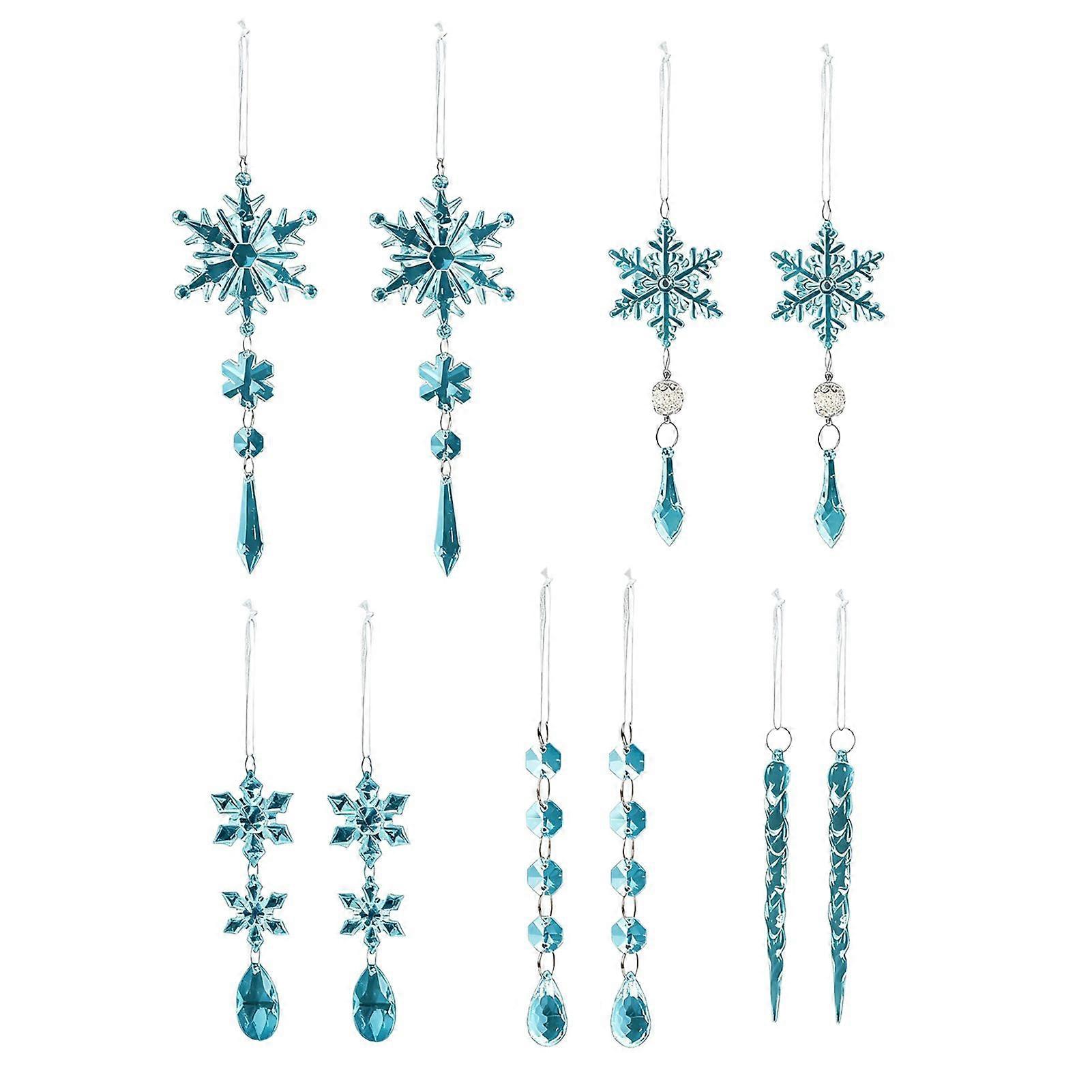 10 Pcs Crystal Snowflake Icicle Ornaments Clear Acrylic Christmas Ornaments for Christmas Tree Winter New Year Party Decor
