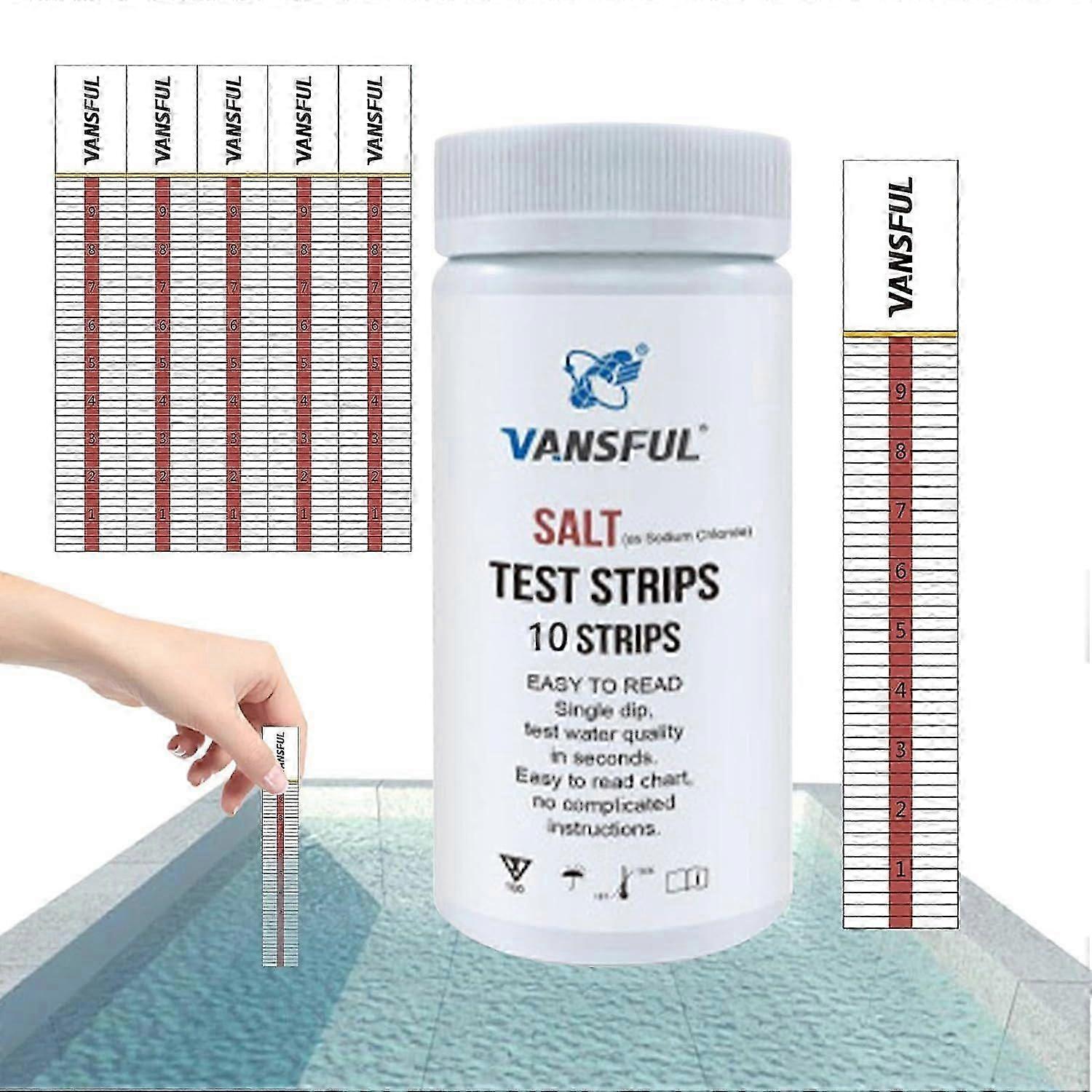 10pcs Pool and Spa Test Strips - Pool Water Test Strips for Testing Water Sodium Chloride Content 0-8000ppm, Monitoring and Balancing Your Pool's Sali