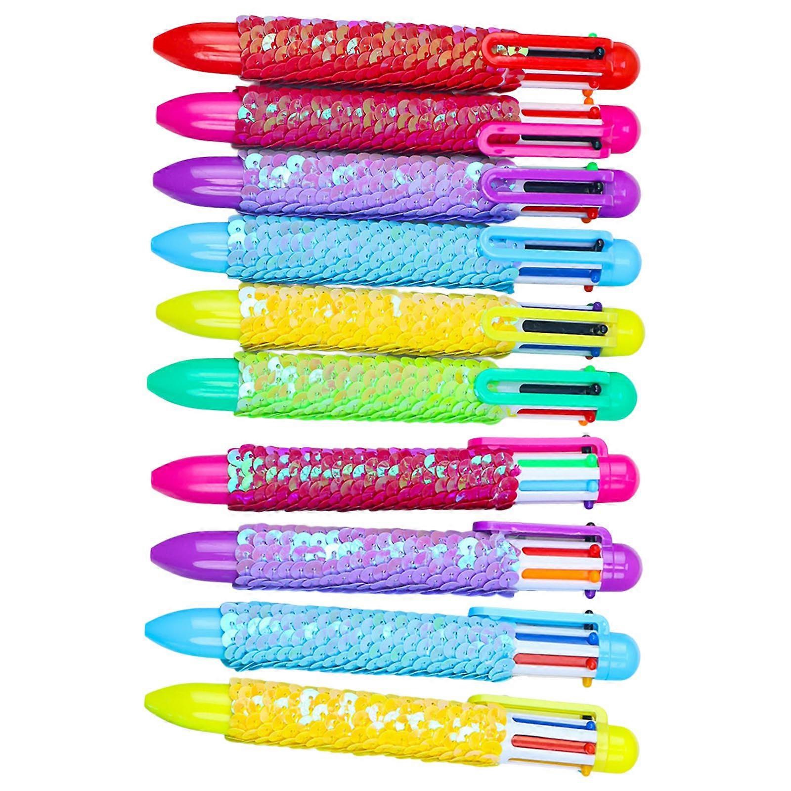 10pcs 1.0mm Retractable Ballpoint Pen 6 in 1 Shuttle Pen Multicolor Pen Sequins Writing Pen School Supplies Multicolor