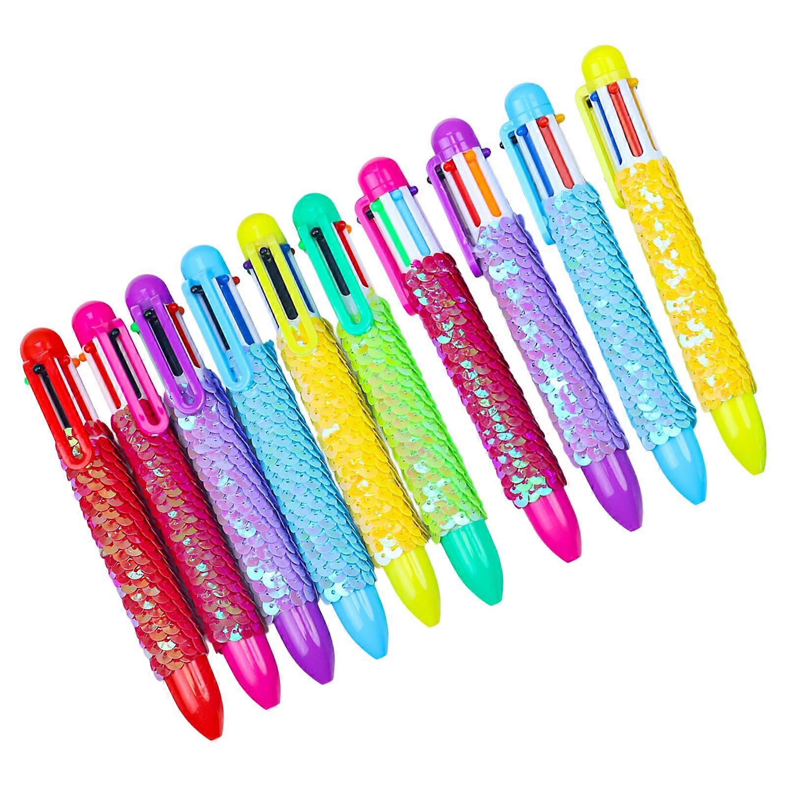 10pcs 1.0mm Retractable Ballpoint Pen 6 in 1 Shuttle Pen Multicolor Pen Sequins Writing Pen School Supplies Multicolor