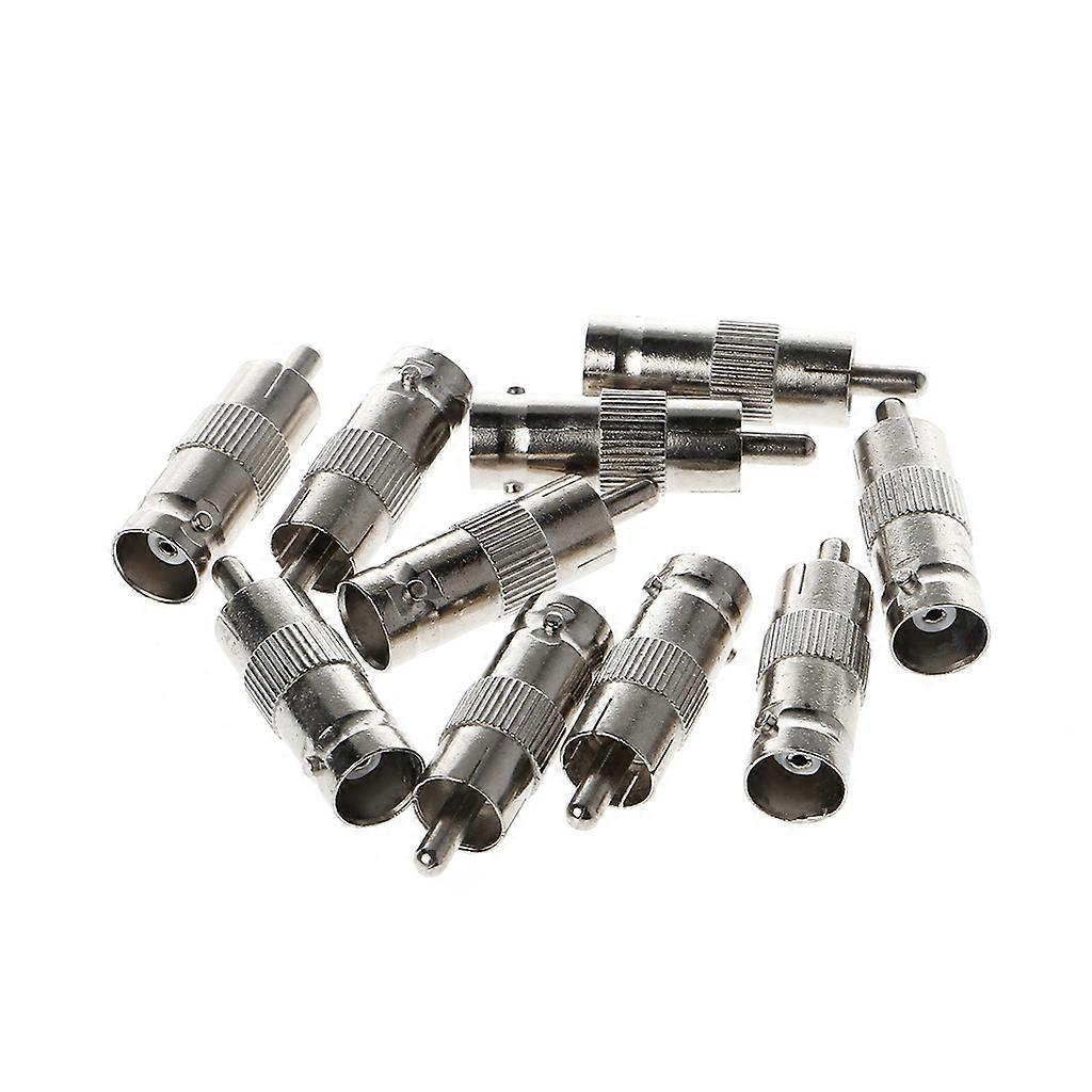 10 Pcs BNC Female Jack to RCA Male Plug Coax Cable Adapters Silver
