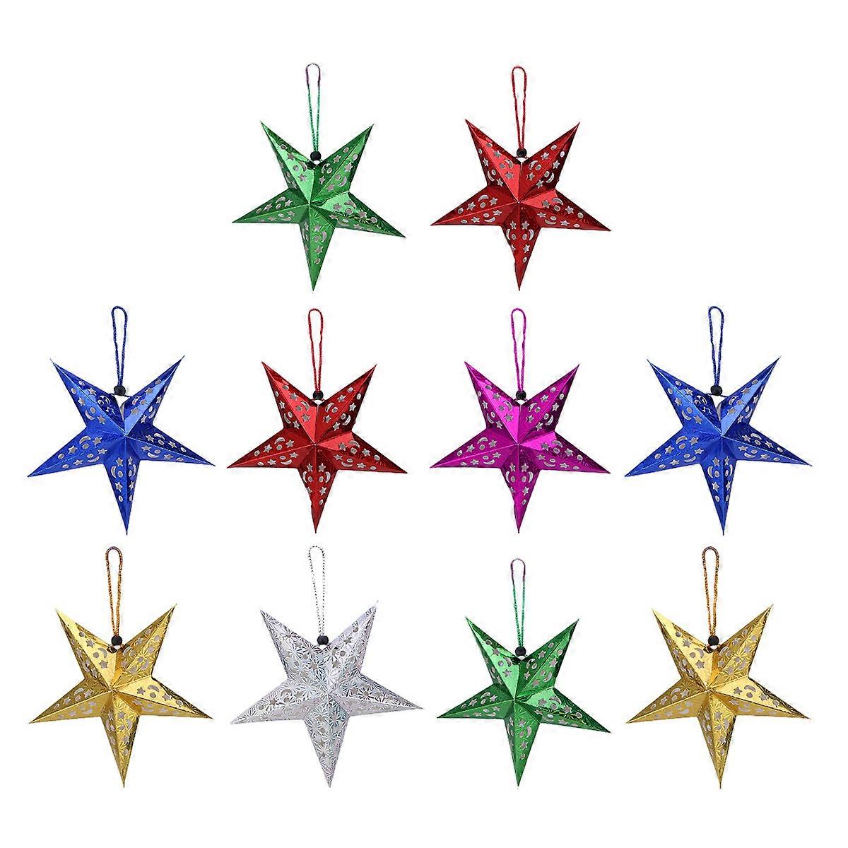 10 Pcs Shiny Pentagram Ceiling Hanging Paper Material Star Lampshade Pendant Hollow Hanging Lantern for Party Holiday Birthday Mixed Color