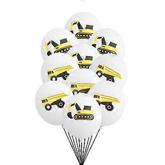 10 Pcs 12 Inch Digger Printed Latex Balloons Sequins Balloons Set with Ribbon Party Decor Ornaments Party Supplies - Digger + Dumper (As Shown)