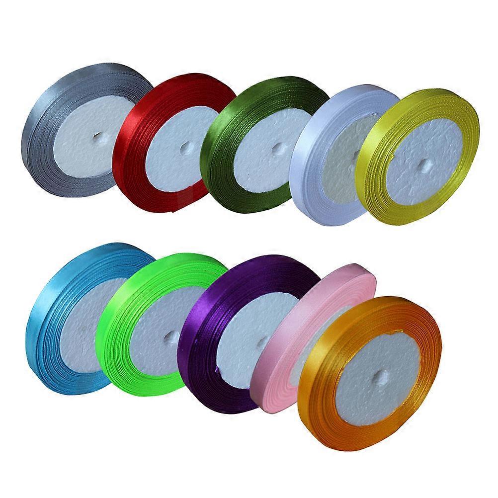 10 Rolls Grosgrain Silk Ribbon Wide Wrapping Ribbon for Wedding, Crafts & Decorations Assorted Colors Including Red, Orange, Green, Blue, Purple,