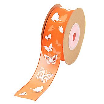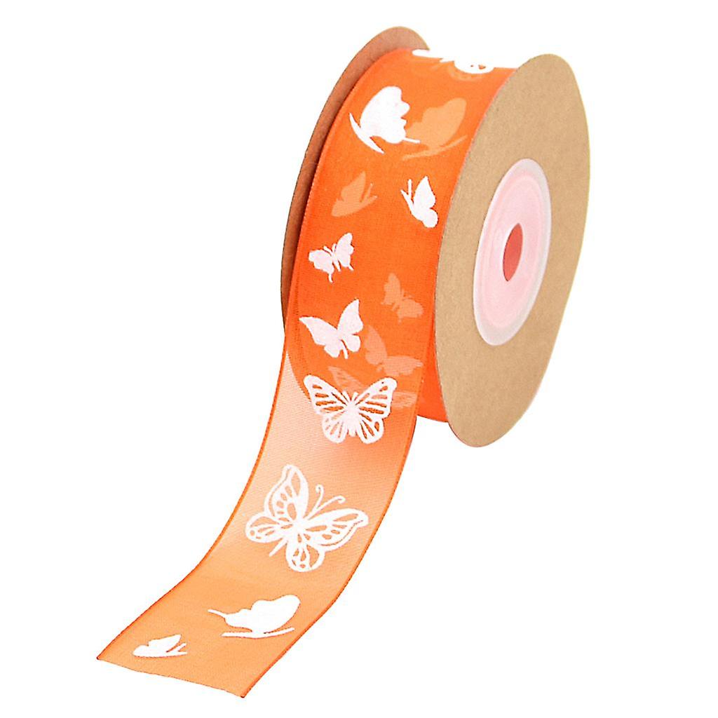10 Meters Butterfly Printed Chiffon Ribbon Embellishment 25mm Rose Red