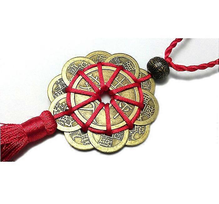 10 Lucky Charm Ancient I CHING Coins Prosperity Protection Good Fortune Home Car Decor Red Chinese Knot FENG SHUI Set