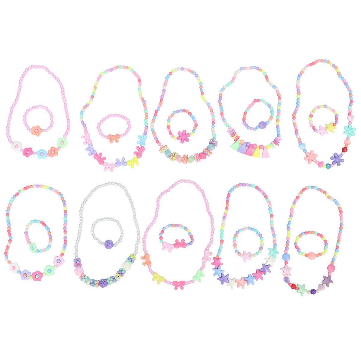 10 Colorful Acrylic Jewelry For Flower Design Beads Necklace Bracelet Set For Birthday Parties Patterns