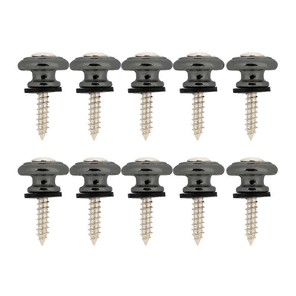 10Pcs Guitar Strap Lock Button Metal End Pin with Screw for Ukulele Electric Bass(Black)