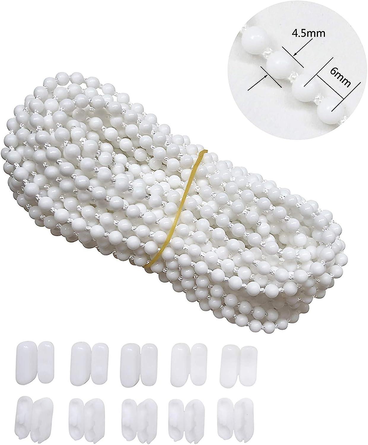 10 Meters Blind Chain with 10 Connectors Bead Chain Cord Replacement Parts Repair Accessories (White) Vertical Venetian Roller Blind Cord