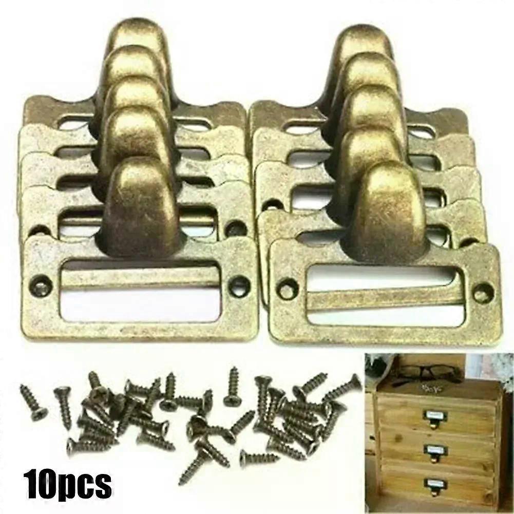 10 PCS Cabinet Drawer Label Pulls Antique Style Brass Tag File Name Card Holder Frame For Jewelry Box Gift Box Cupboard Pulls