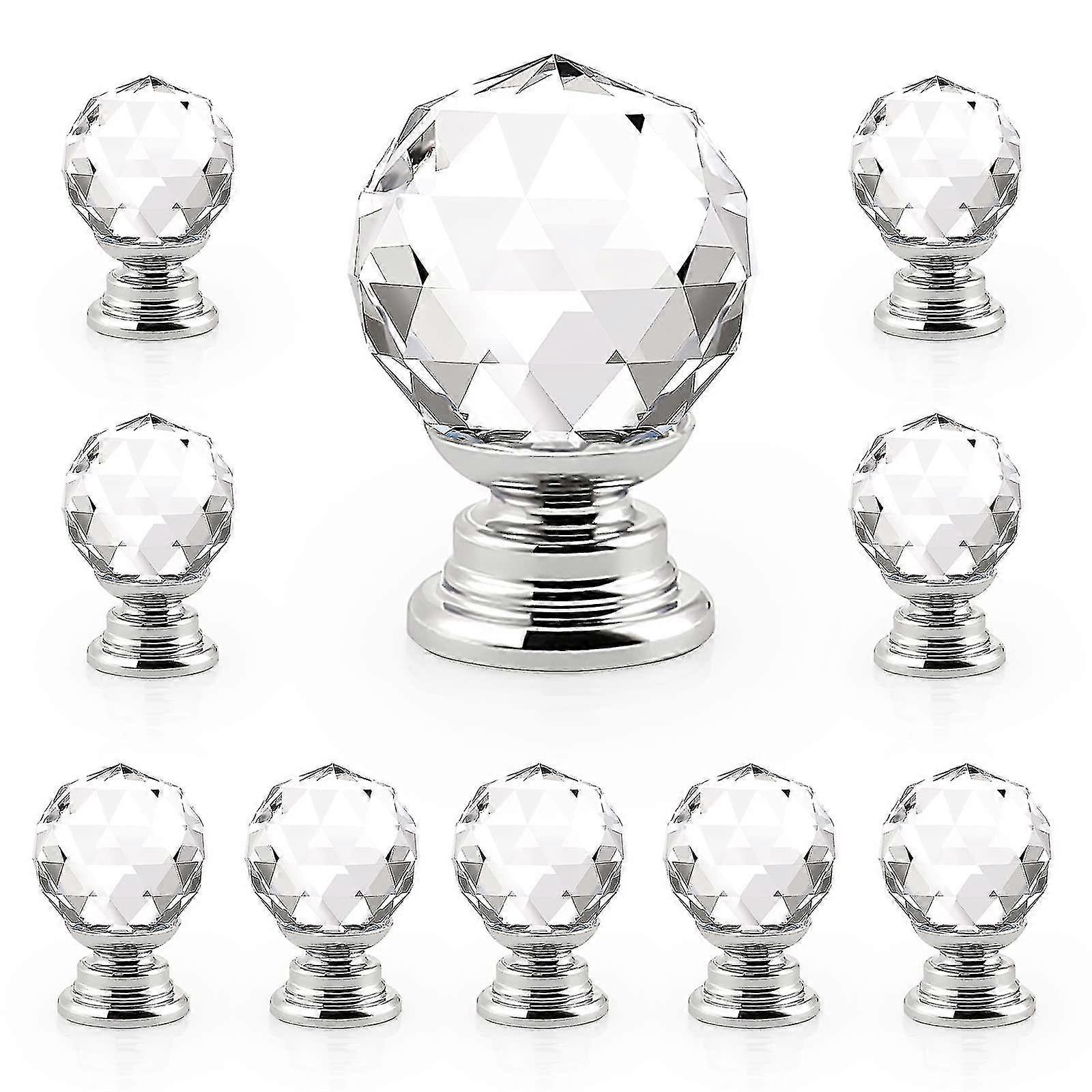 10 X 20mm Round Glass Kitchen Cabinet Knob Clear Diamond Furniture Drawer Handle Crystal Cupboard Pull With Screws