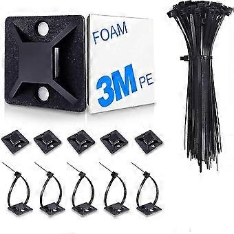 100 חבילת הר אזיקון רוכסן עם אזיקונים, תושבות גב דבק עצמי עבור מחזיק חוט, מאנה כבל שחור