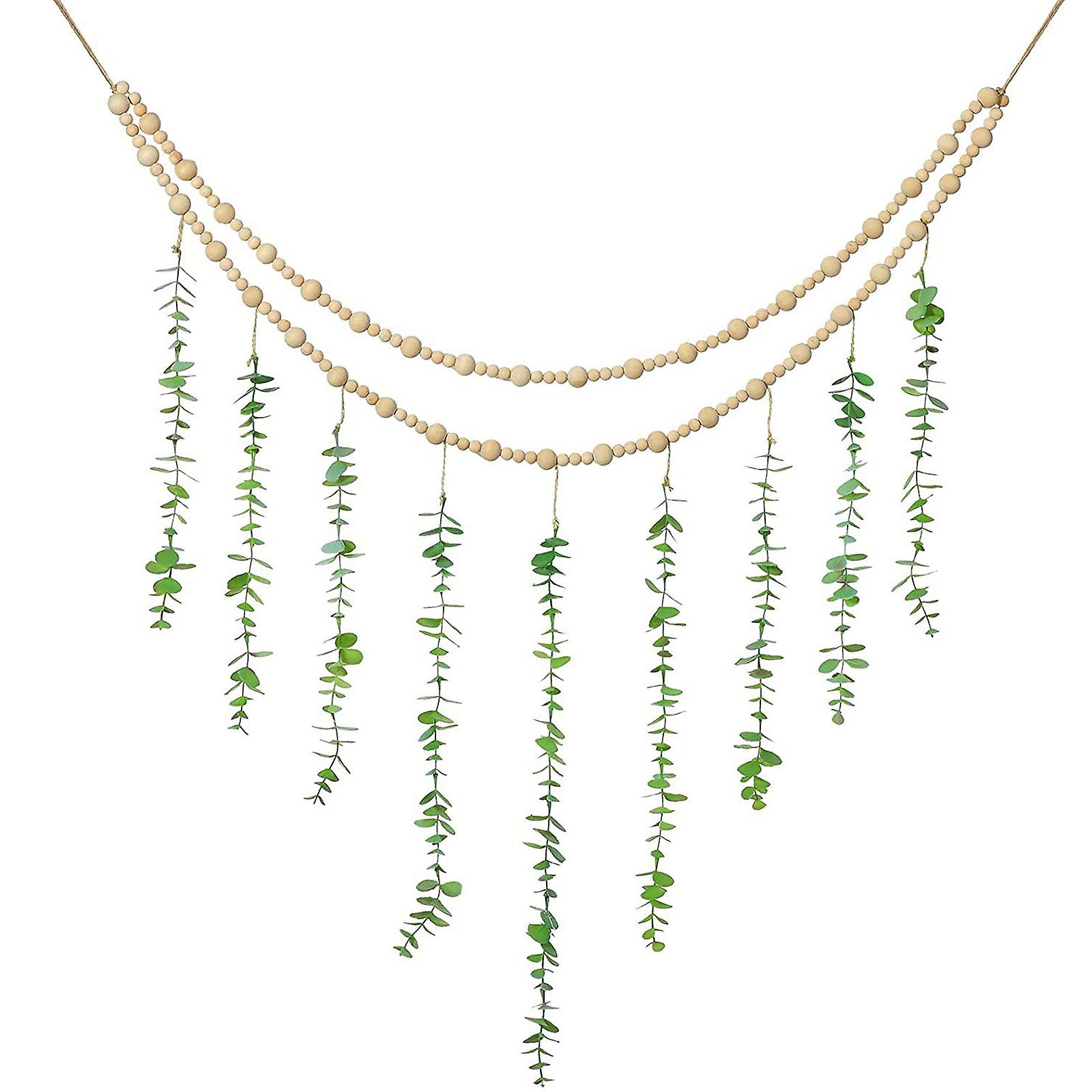 100% New,36 x 36 Inch Hanging Eucalyptus Boho Wall Decor Large Boho Bedroom Wall Hanging Wooden Bead Garland Artificial Eucalyptus