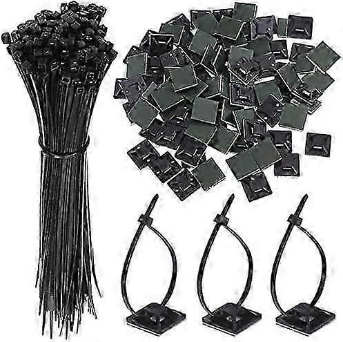 100 Pieces Cable Ties + 100 Pieces Self Adhesive Wire Tie Fixing Base Holders, Cable Management Clip