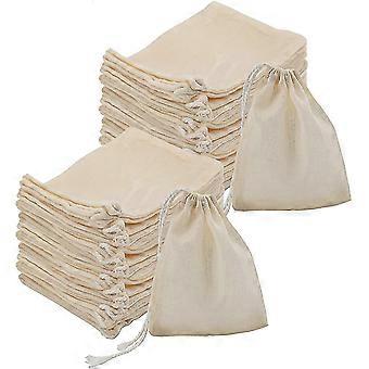 100 חתיכות שקיות שרוך כותנה, 4 X 3 אינץ '/10 x 8 ס"מ שקית מוסלין טבעית לא מולבנת לתבלינים, תה, עשבי תיבול
