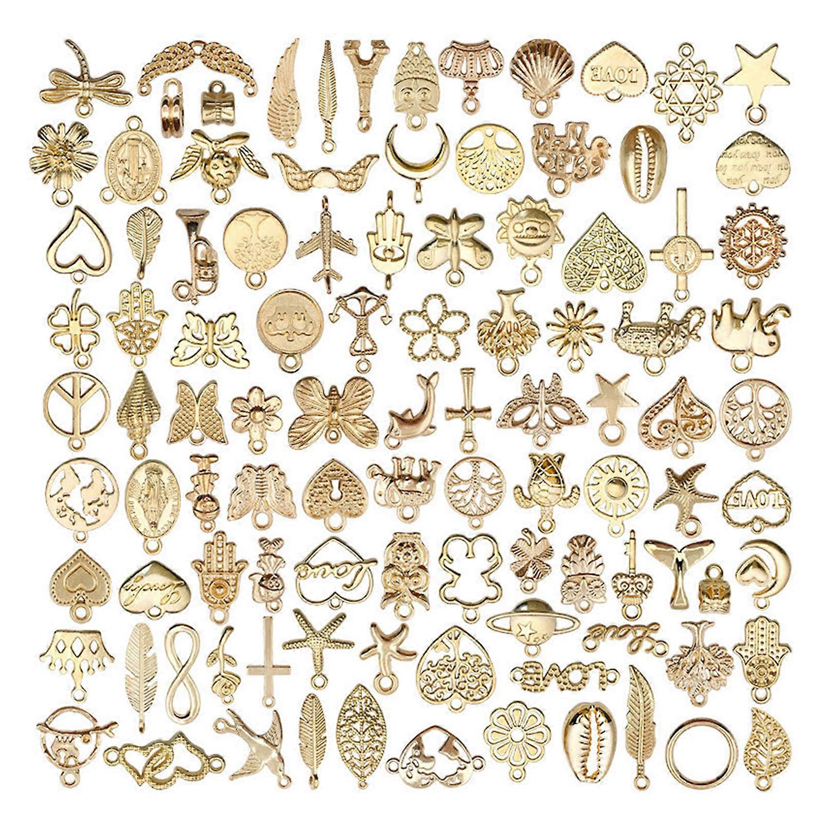 100pcs Gold Alloy Necklace Pendant Accessories 10-30mm DIY Jewelry