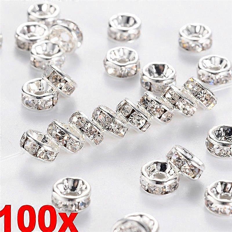 100Pcs/Pack Silver Gold Crystal Rhinestone Rondelle Spacer Beads DIY 6Mm 8Mm