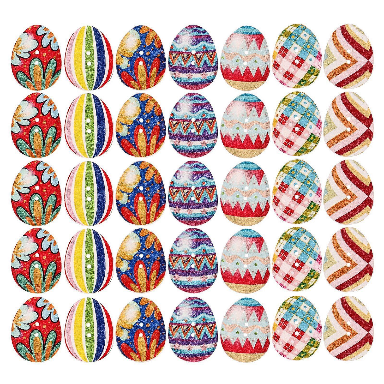 100Pcs Wooden Buttons Easter Eggs Mixed 2 Holes Button for Sewing Scrapbooking Crafts DIY
