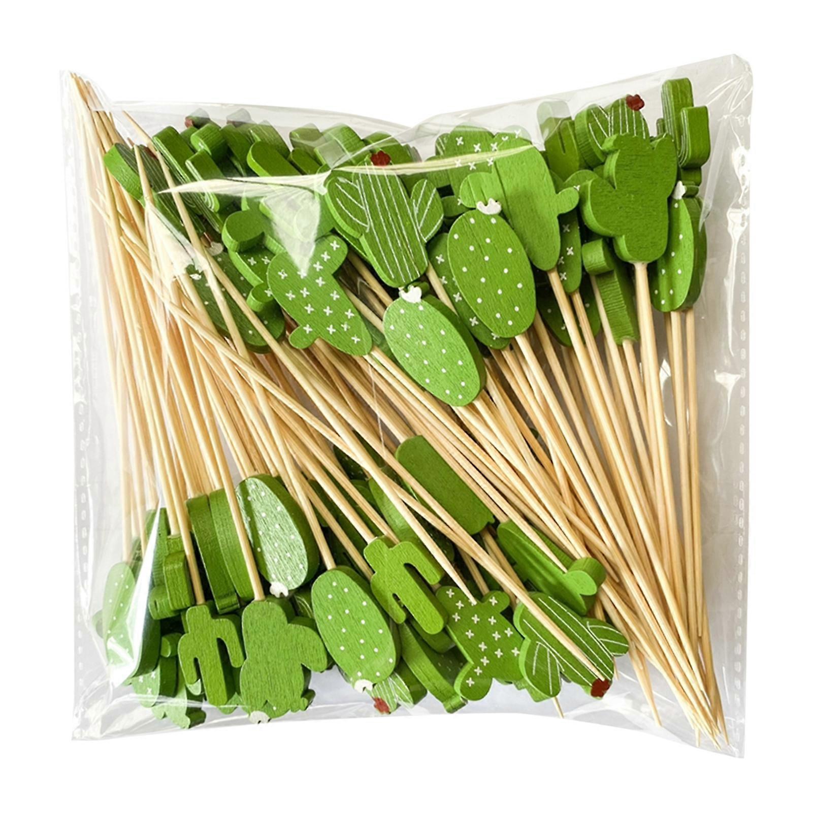 100Pcs Fruit Forks Food Grade Anti-slip Wood Long Handle Cactus Shape Buffet Picks Party Supplies