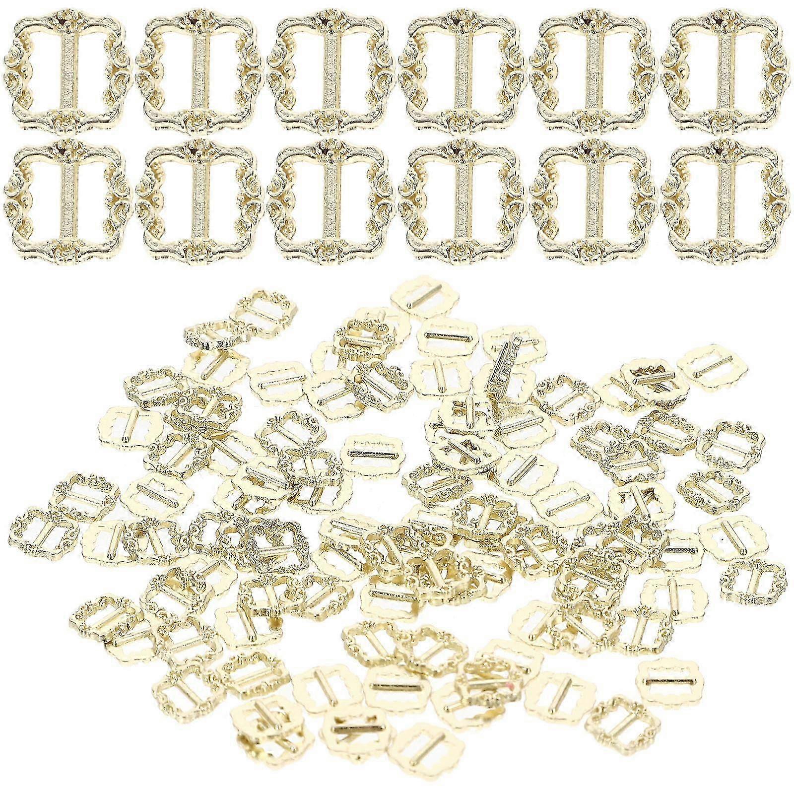 100Pcs Mini Metal Button Adjustable -Glide Buckle For Kids Doll Decorating Scenes Golden DIY Fastener