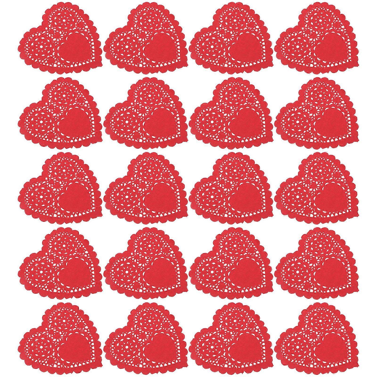 100pcs Valentine Heart Cake Doilies, Decorative Oil Blotting Pads, Food Grade Paper for Wedding Anniversary Party Desserts