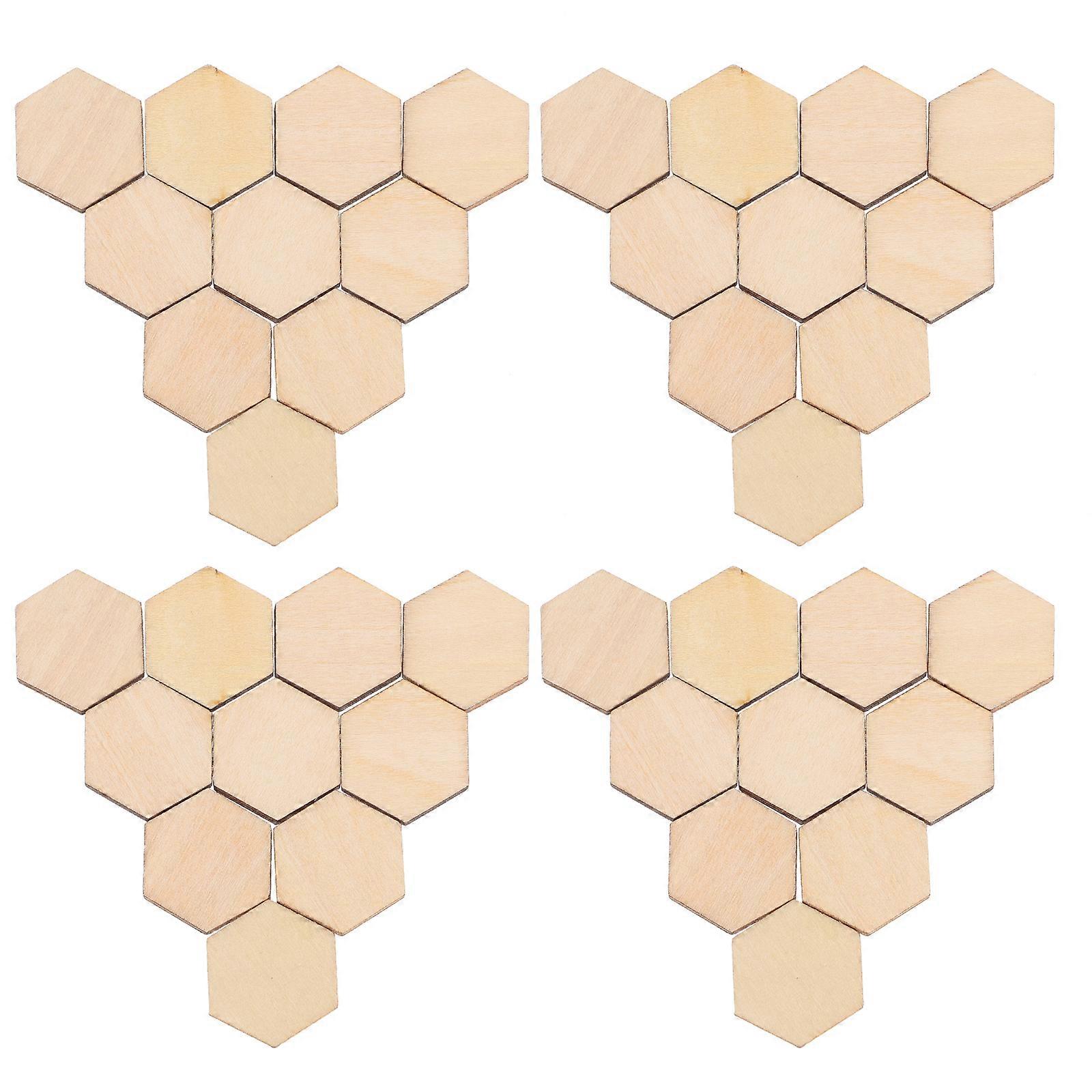 100Pcs Wooden Hexagon Pieces Unfinished Hexagon Cutout Christmas DIY Craft Supplies Ornaments 17. 5MM